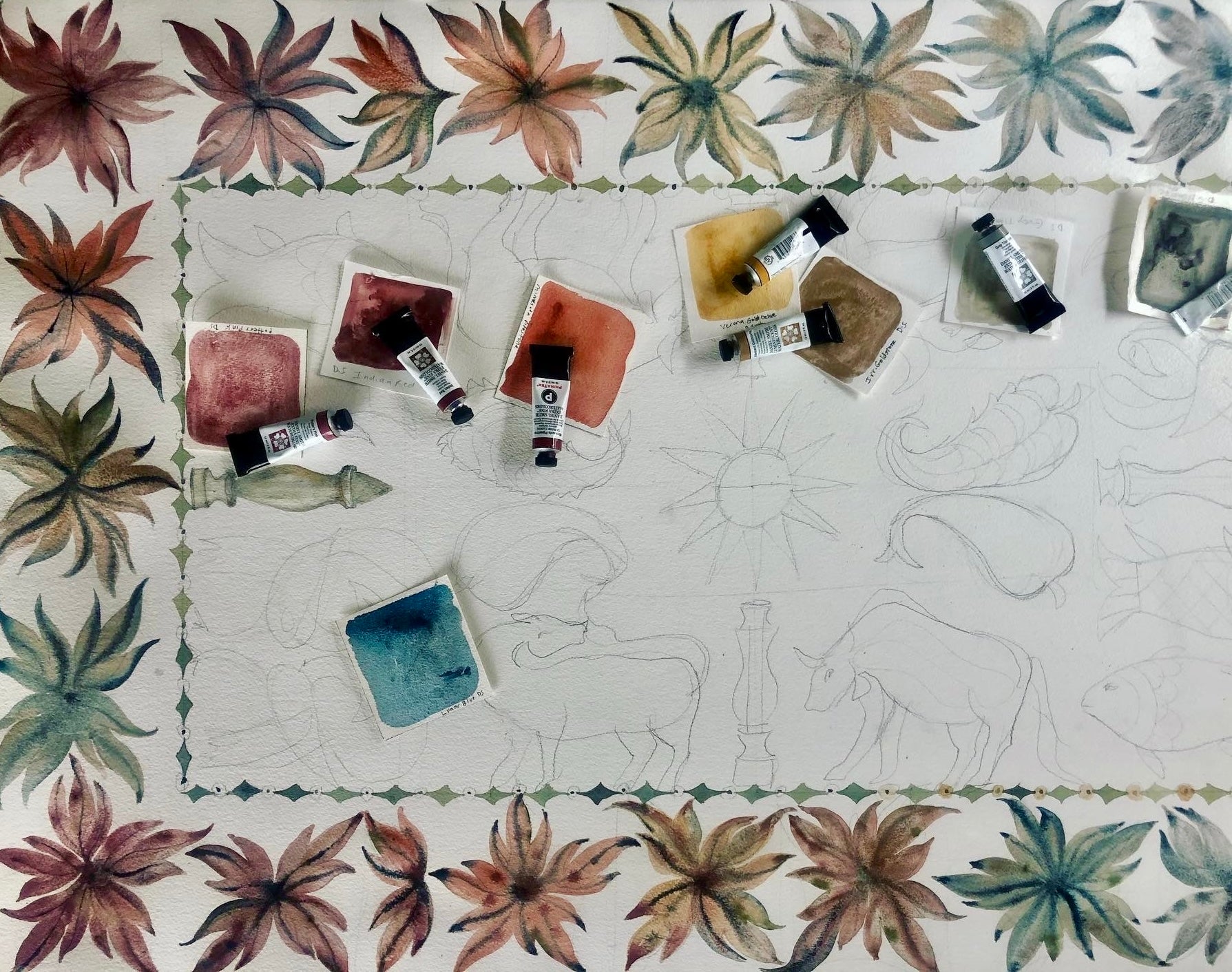 Before beginning the painting I will confirm approval of the drawing as well as color selections.